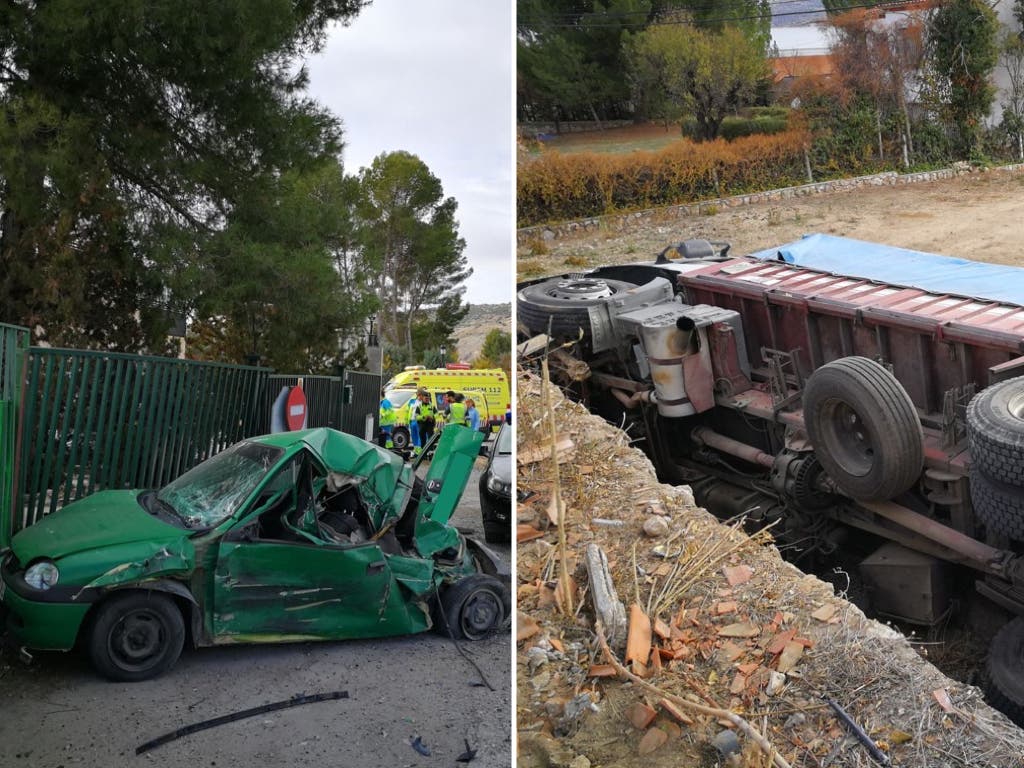 Un camión de gran tonelaje ha perdido el control y se ha salido de la carretera, por causas que se desconocen, impactando contra un vehículo que se encontraba aparcado. Después, se ha empotrado contra el vallado de una finca, ha caído dentro y ha quedado volcado lateralmente en el interior de la parcela.