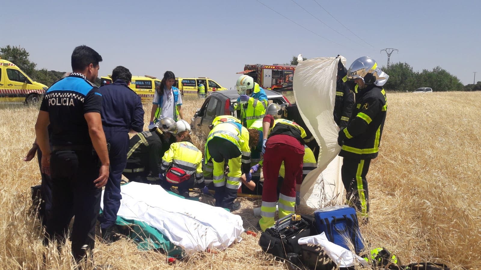 La mujer, que presenta politraumatismos, fue trasladada en helicóptero por el SUMMA al Hospital 12 de Octubre.