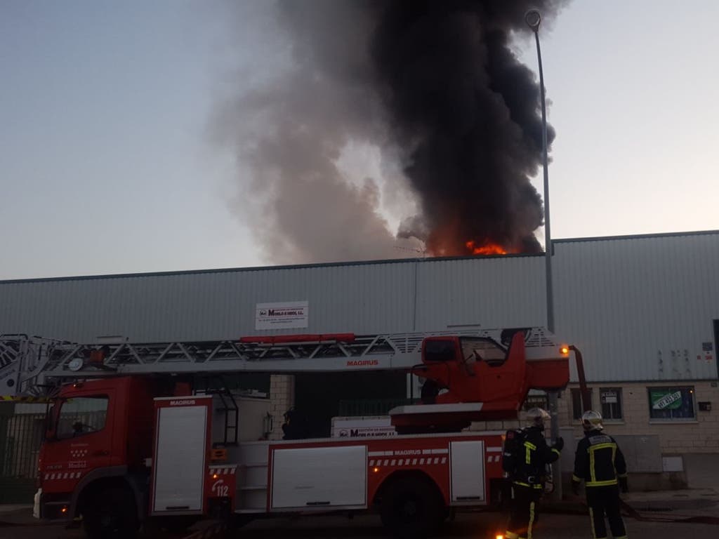 #BomberosCM trabajan en la extinción del incendio de una nave industtial, #CampoReal. Se ha evitado la propagación a los edificios adyacentes. No hay heridos pic.twitter.com/vhrszFvKGo