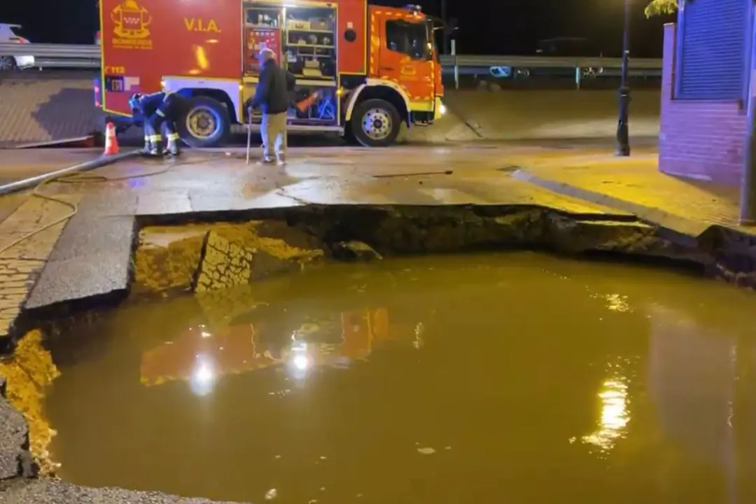 La rotura de una tubería en Camarma provoca un gran socavón e inunda garajes