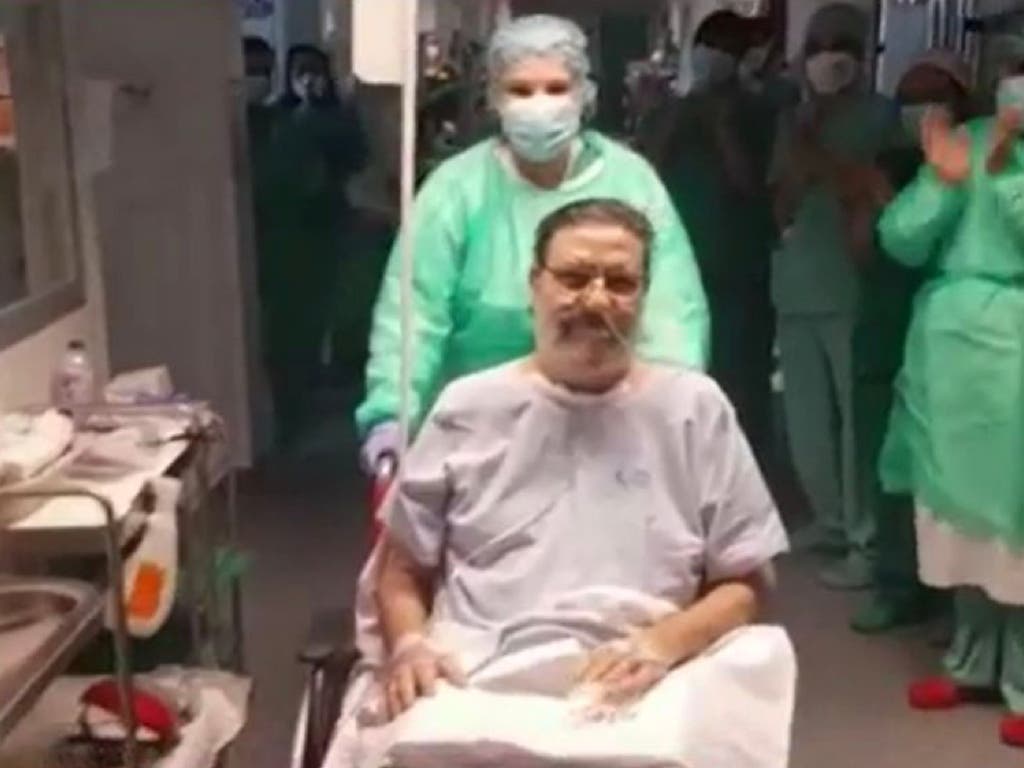 Julio Lumbreras, de 65 años, ha abandonado la UCI del Hospital de Torrejón de Ardoz 57 días después de haber ingresado, según ha contado este sábado Telemadrid.