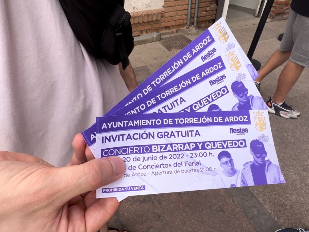 El Ayuntamiento de Torrejón de Ardoz ha comunicado que se han agotado ya las invitaciones gratuitas para el concierto de Bizarrap y Quevedo (lunes 20 de junio a las 23:00 horas) en el Recinto Ferial.