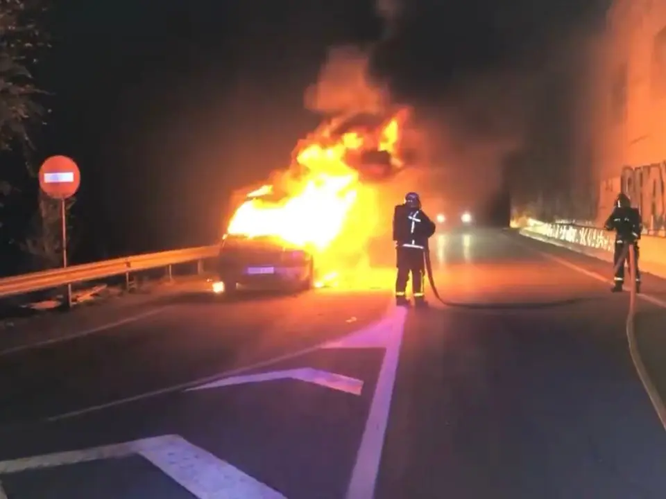 El vehículo se encontraba completamente en llamas a la llegada de los bomberos, que rápidamente apagaron el fuego.