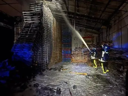 La nave almacenaba palets de madera.