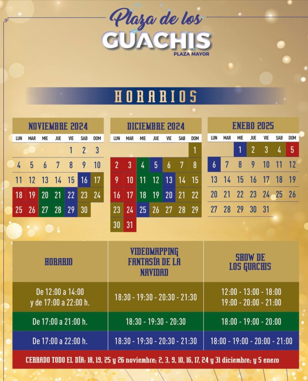 Además, se puede disfrutar de un Mercado Navideño con establecimientos locales, de una Feria Navideña con atracciones, del Árbol de la Ilusión y del Escenario de los Ángeles con el Show de los Guachis.
