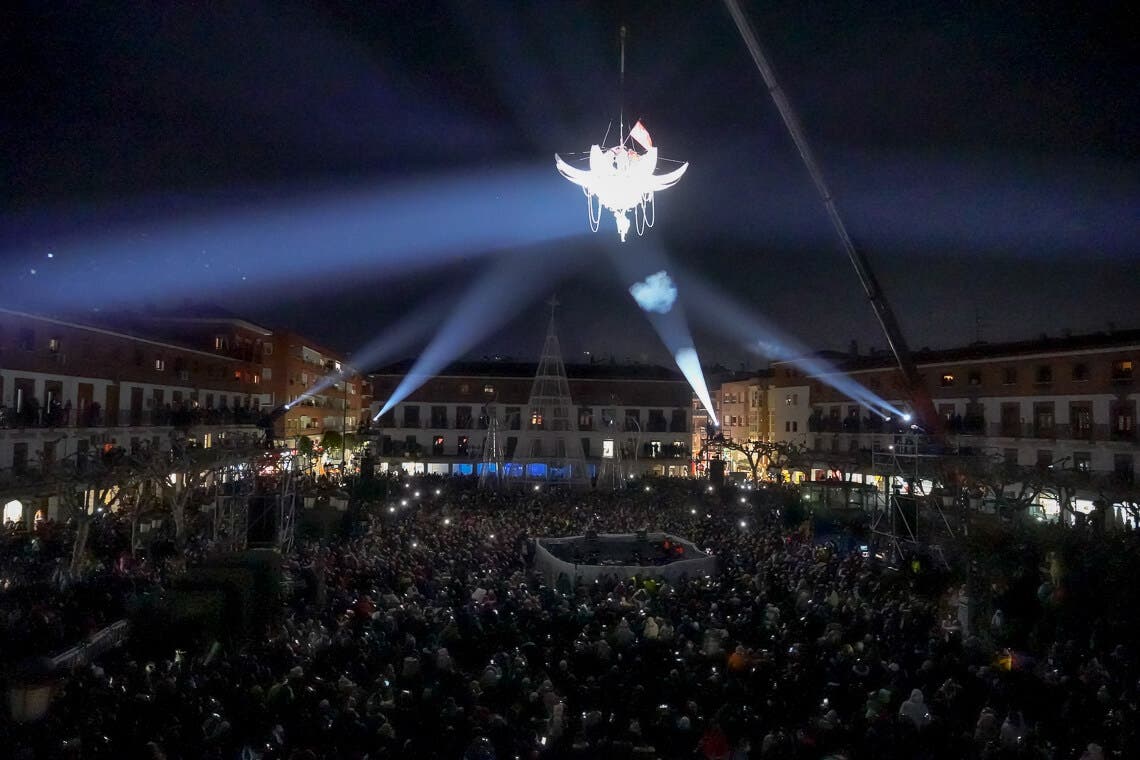 Cuando lleguen a la Plaza Mayor, los Reyes Magos serán recibidos por el alcalde, en nombre de la ciudad, y desde allí saludarán a todos los presentes desde el centro de la Plaza Mayor aproximadamente a las 20:30 horas. Al finalizar el saludo, comenzará el Gran Espectáculo Aéreo Reyes Magos a cargo de la compañía internacional Grupo Puja!