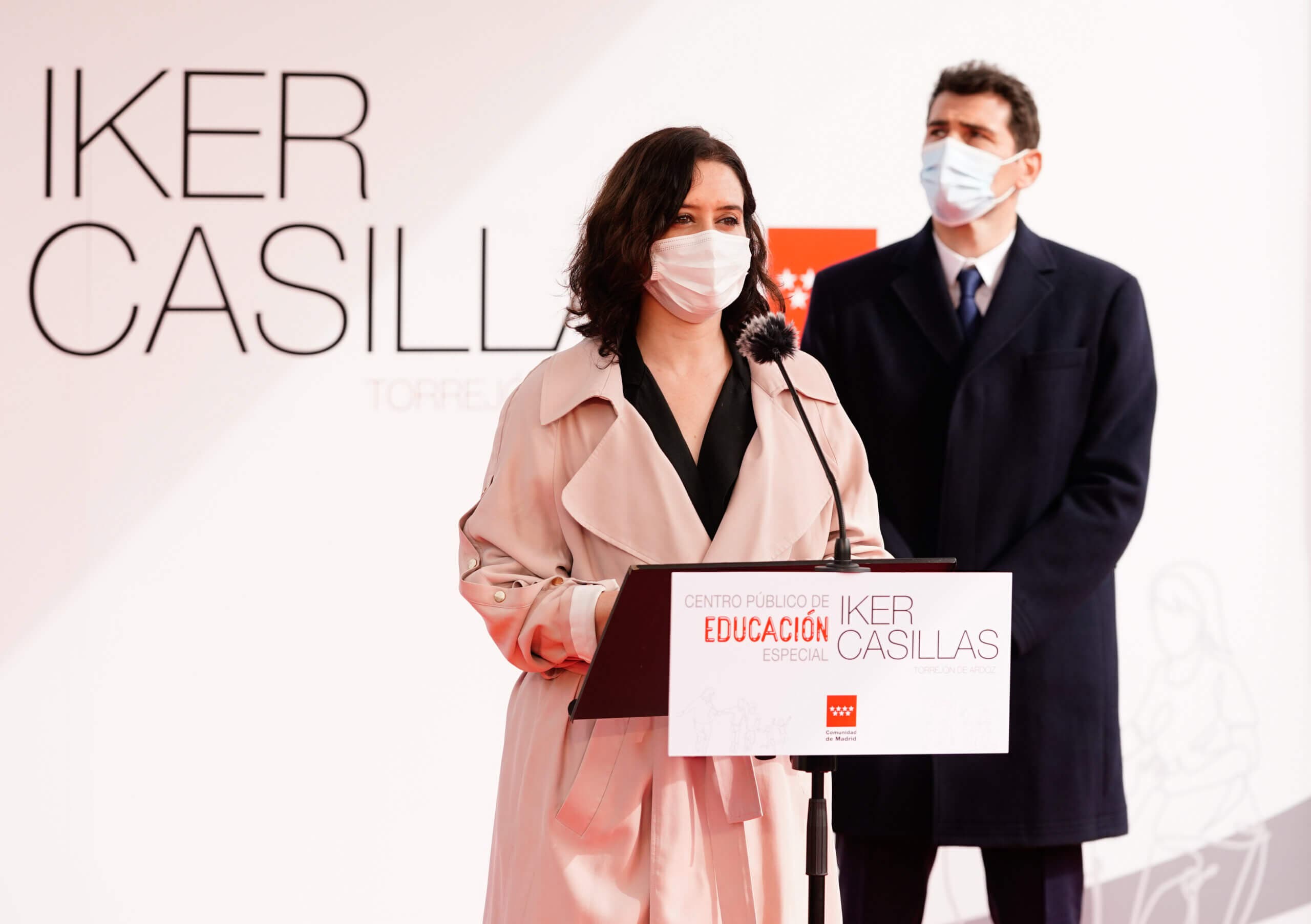 La presidenta de la Comunidad de Madrid, Isabel Díaz Ayuso, ha presentado hoy con el futbolista Iker Casillas el nuevo colegio público de Educación Especial de Torrejón de Ardoz que llevará el nombre del exjugador, una persona que, como ha señalado la jefa del Gobierno, está «cargada de valores como el esfuerzo y la perseverancia, intrínsecos» en esta modalidad educativa.