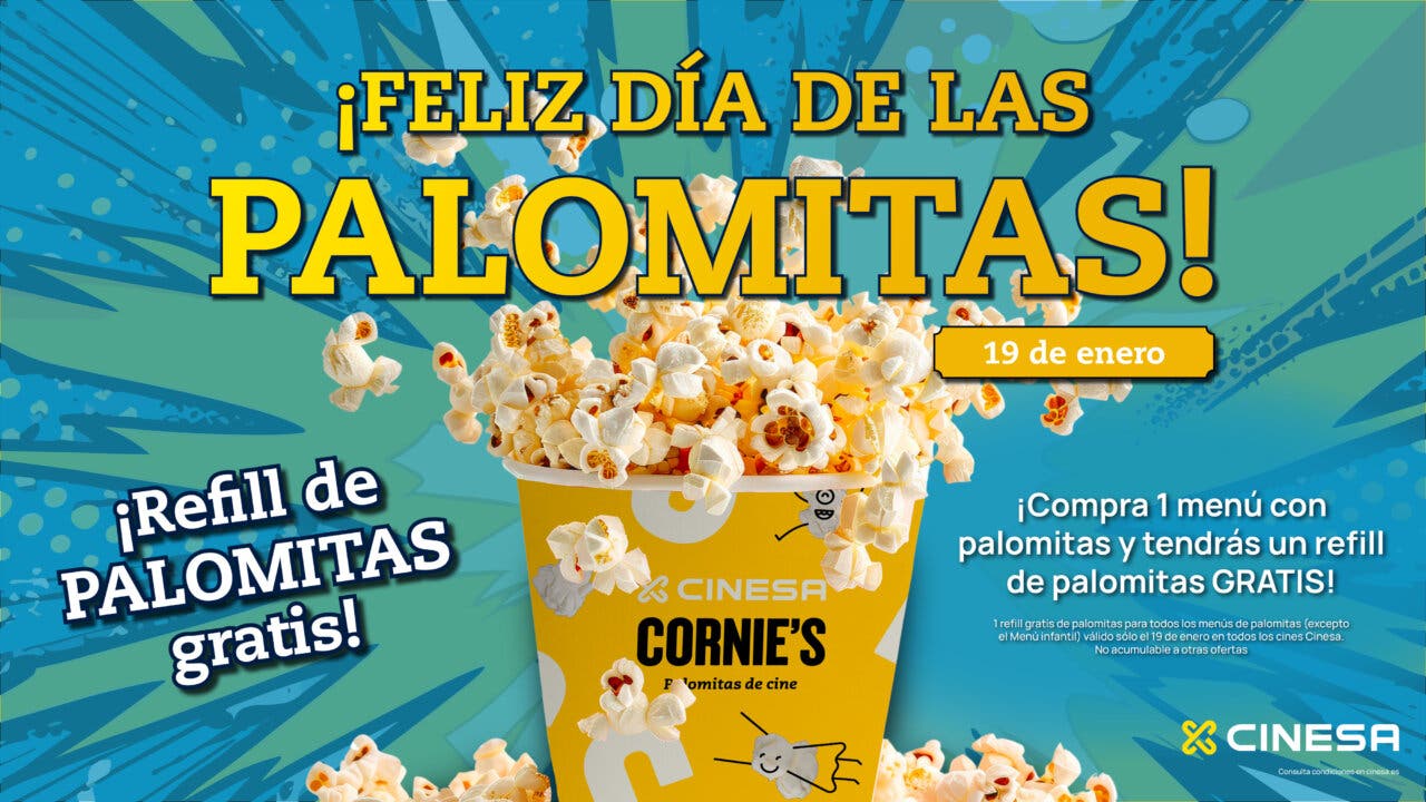 Así, con motivo del Día Nacional de la Palomita, cualquiera que compre un menú de palomitas en Cinesa este domingo 19 de enero podrá rellenar su pack de palomitas una vez sin coste adicional.