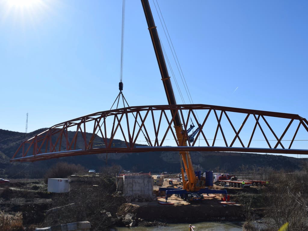 La instalación de la pasarela peatonal sobre el río Henares, que conectará Mejorada del Campo con las localidades de San Fernando de Henares y Torrejón de Ardoz, ha sido completada hoy con éxito y podría ser abierta en las próximas semanas, después de que se completen todos los trabajos de esta infraestructura de 60 metros de longitud y 4 metros de anchura.