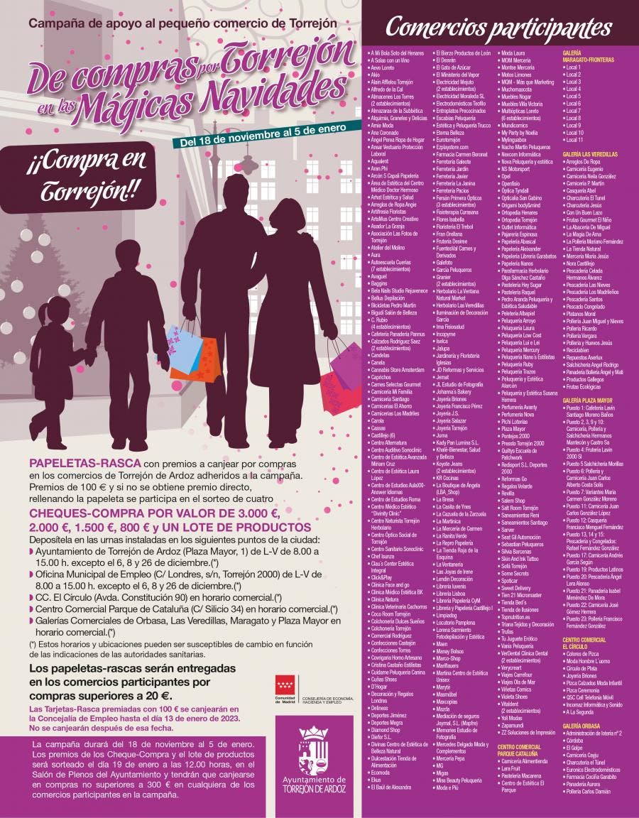 Vuelve «De compras por Torrejón en las Mágicas Navidades», para apoyar al comercio de la ciudad y premiar a los clientes que realicen sus compras en alguno de los 367 establecimientos participantes en la campaña.
