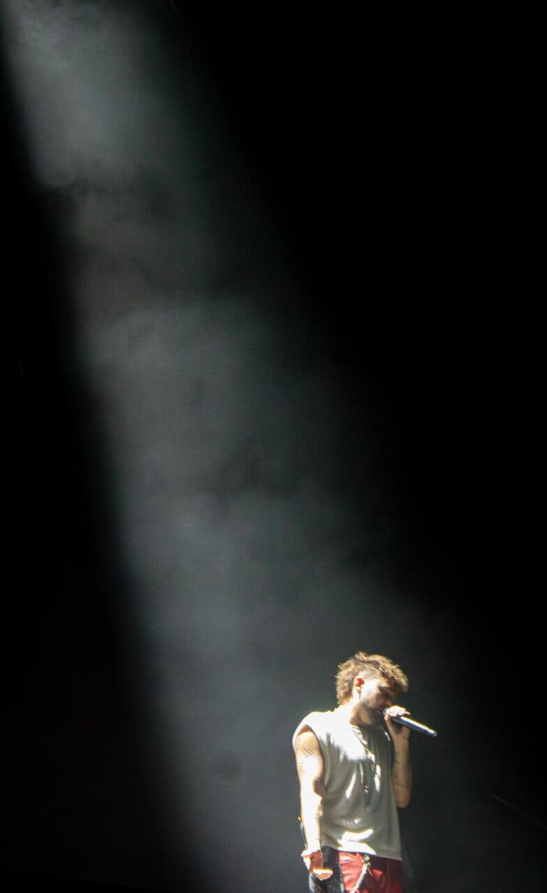 Se mostró entregado y emocionado ante las 40.000 personas que llenaron el recinto, coreando y bailando sus canciones más populares desde el primer tema.