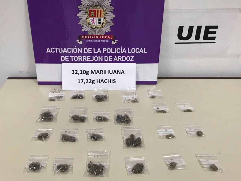 La Policía Local de Torrejón de Ardoz ha detenido a un individuo al que sorprendieron  consumiendo sustancias estupefacientes y portando entre sus enseres bolsitas con la droga separada para su venta.