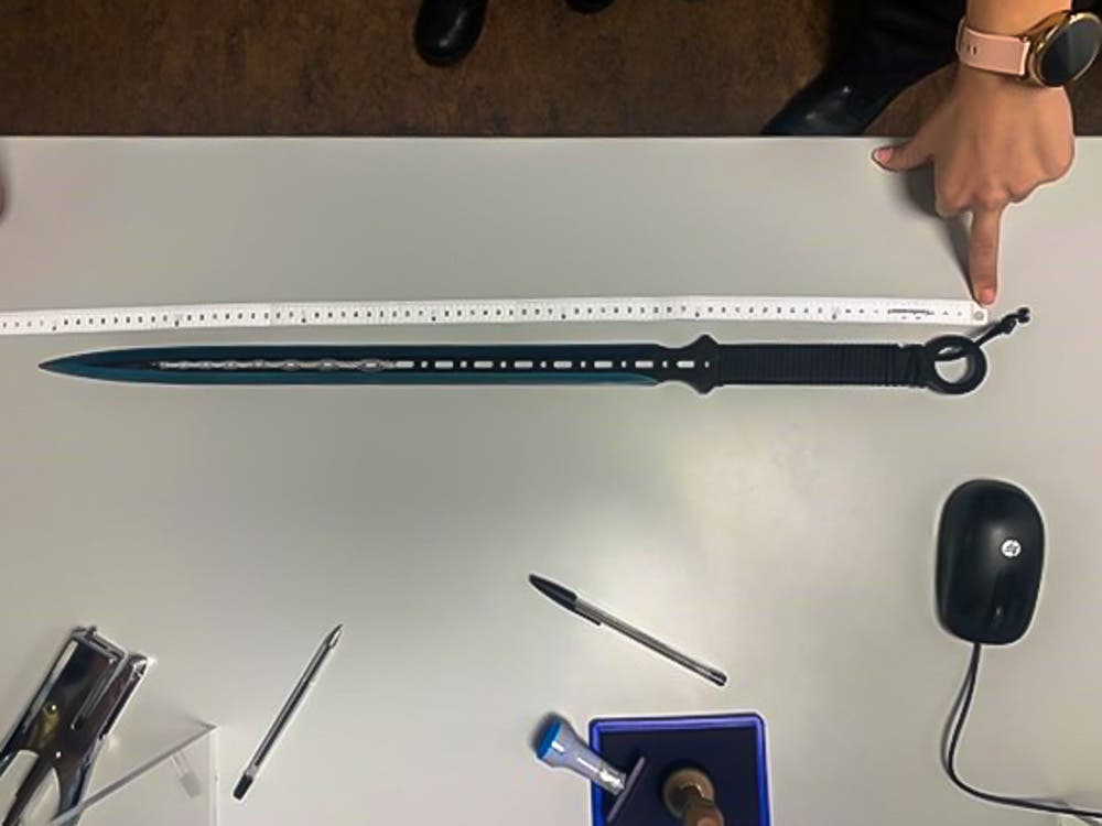 Al no encontrarles armas de ningún tipo en su posesión durante el cacheo, los agentes procedieron a inspeccionar las inmediaciones, hallando escondida entre unos arbustos una espada de 72 centímetros.