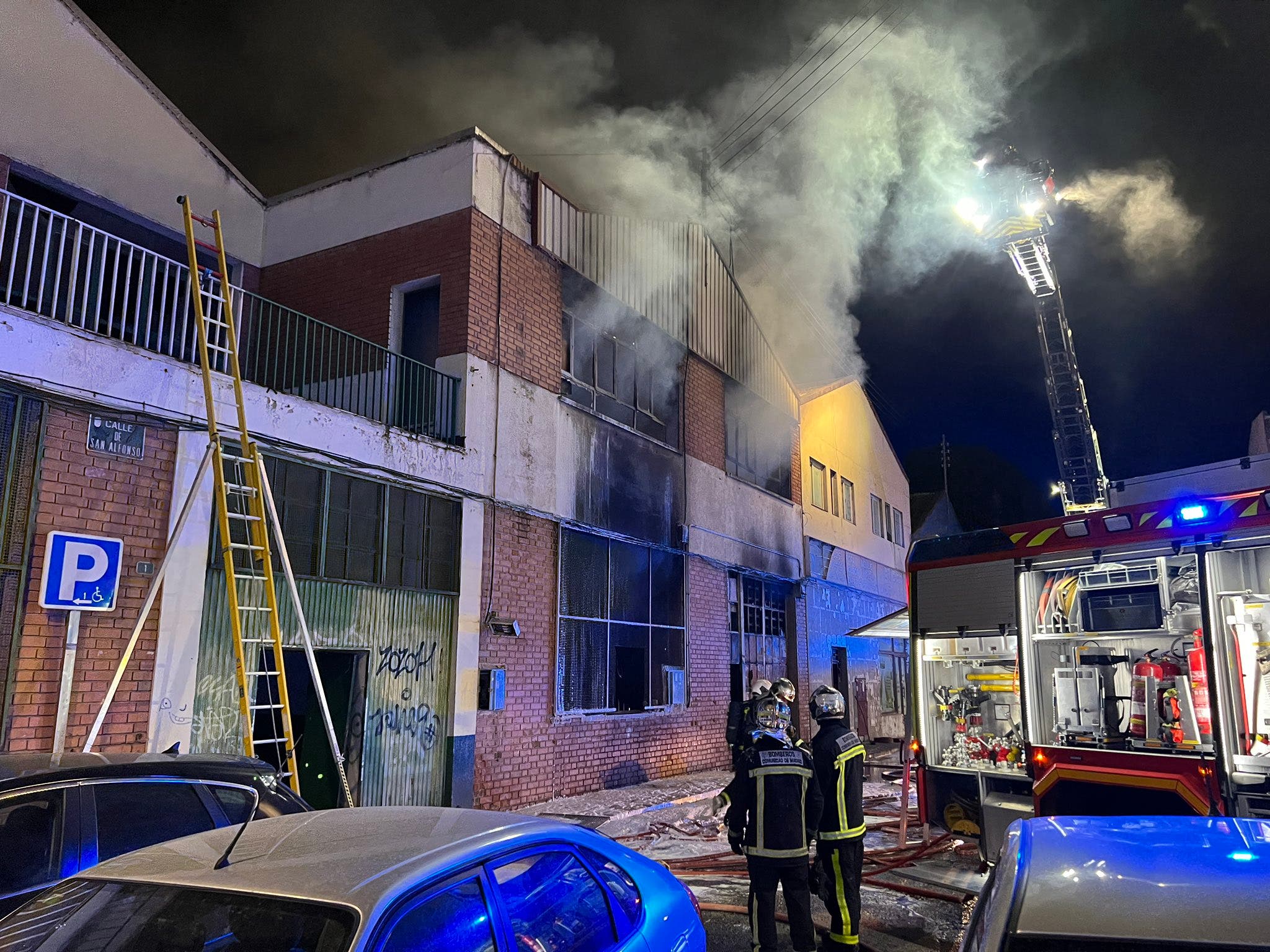 Dos muertos en el incendio de una nave industrial okupada en Torrejón Ardoz