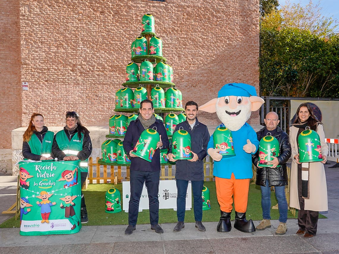 Los torrejoneros tienen la posibilidad de ganar un miniglú con la imagen de los Guachis, los entrañables personajes infantiles de las Mágicas Navidades, gracias a Ecovidrio y al Ayuntamiento de Torrejón de Ardoz. El alcalde, Alejandro Navarro Prieto, junto al responsable de Ecovidrio, Ricardo Sevilla, el concejal de Limpieza Urbana, Contratación y Administración, Valeriano Díaz, la edil de Igualdad y Festejos, María Eugenia Gil, junto a dos educadoras ambientales, han presentado esta mañana la campaña medioambiental.