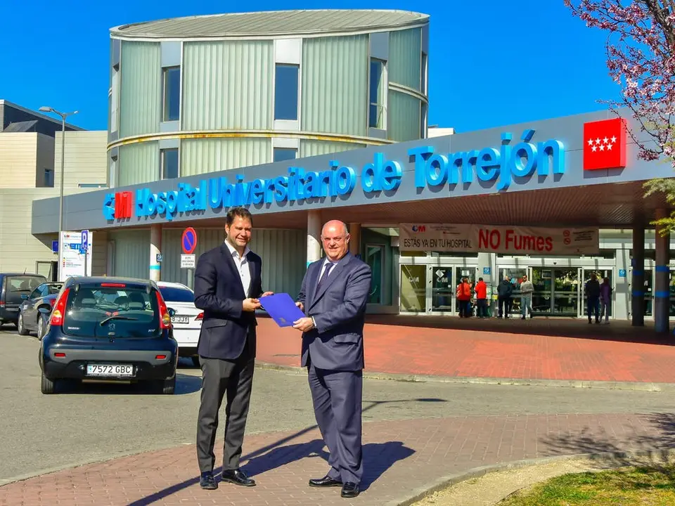 El alcalde de Torrejón de Ardoz, Ignacio Vázquez, se ha reunido  en el Hospital Universitario de Torrejón con el consejero delegado de Ribera Salud, Alberto de Rosa. El regidor le ha trasladado en una carpeta las peticiones de los vecinos para mejorar el servicio, como reducir los tiempos de espera en las urgencias y en las especialidades médicas más demandadas.