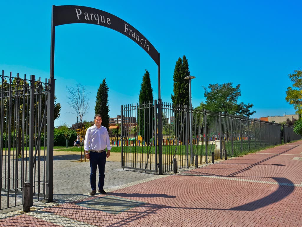 En la imagen de portada: El alcalde de la localidad en la presentación del nuevo vallado del Parque Francia (Ayto. Torrejón).