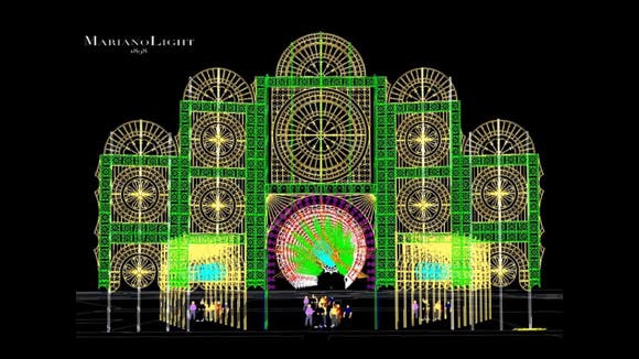 La Puerta Mágica, nombre que se le ha dado en los últimos años, en esta ocasión incorpora un panel LED RGB de 28 x 20 metros, formando tres galerías desde un único punto de vista, y se podrá disfrutar en diferentes pases durante todos los días hasta el 6 de enero.