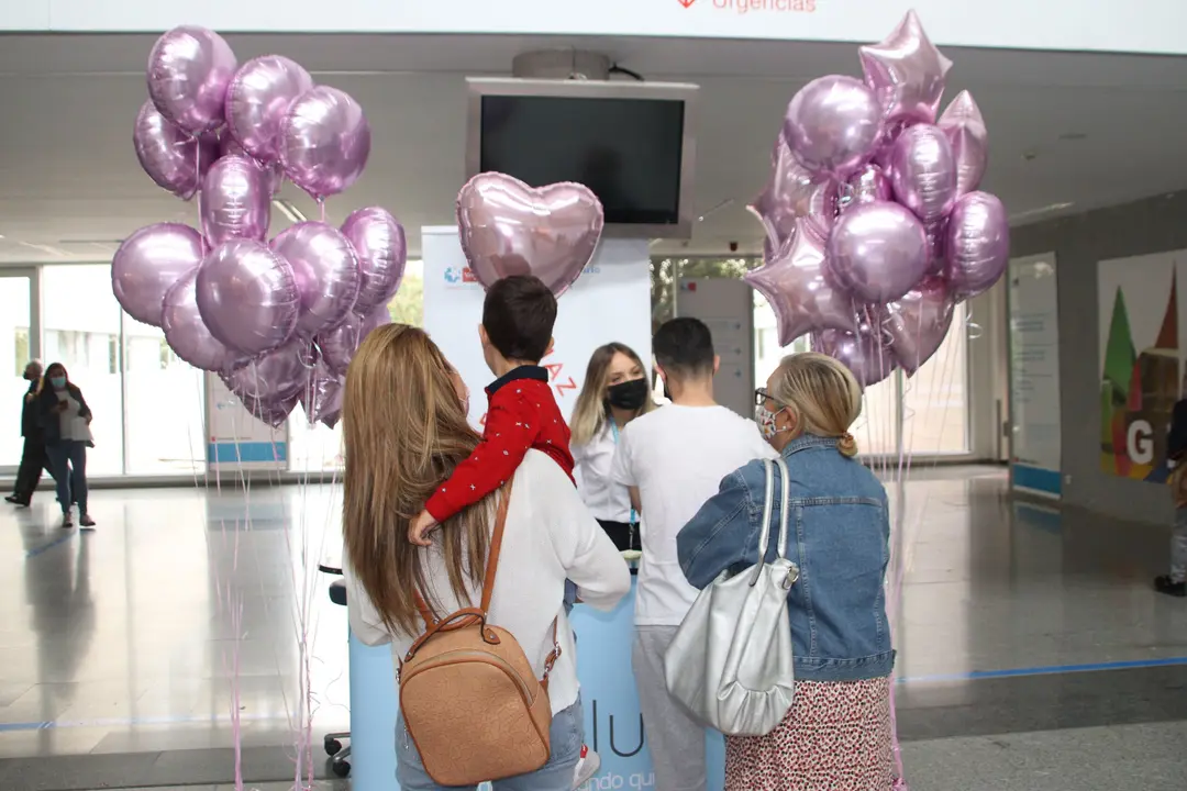 Durante la jornada y para dar visibilidad a esta enfermedad, los profesionales del centro llevan mascarillas y lazos rosas y los pacientes pediátricos pueden llevarse a casa un globo de color rosa.