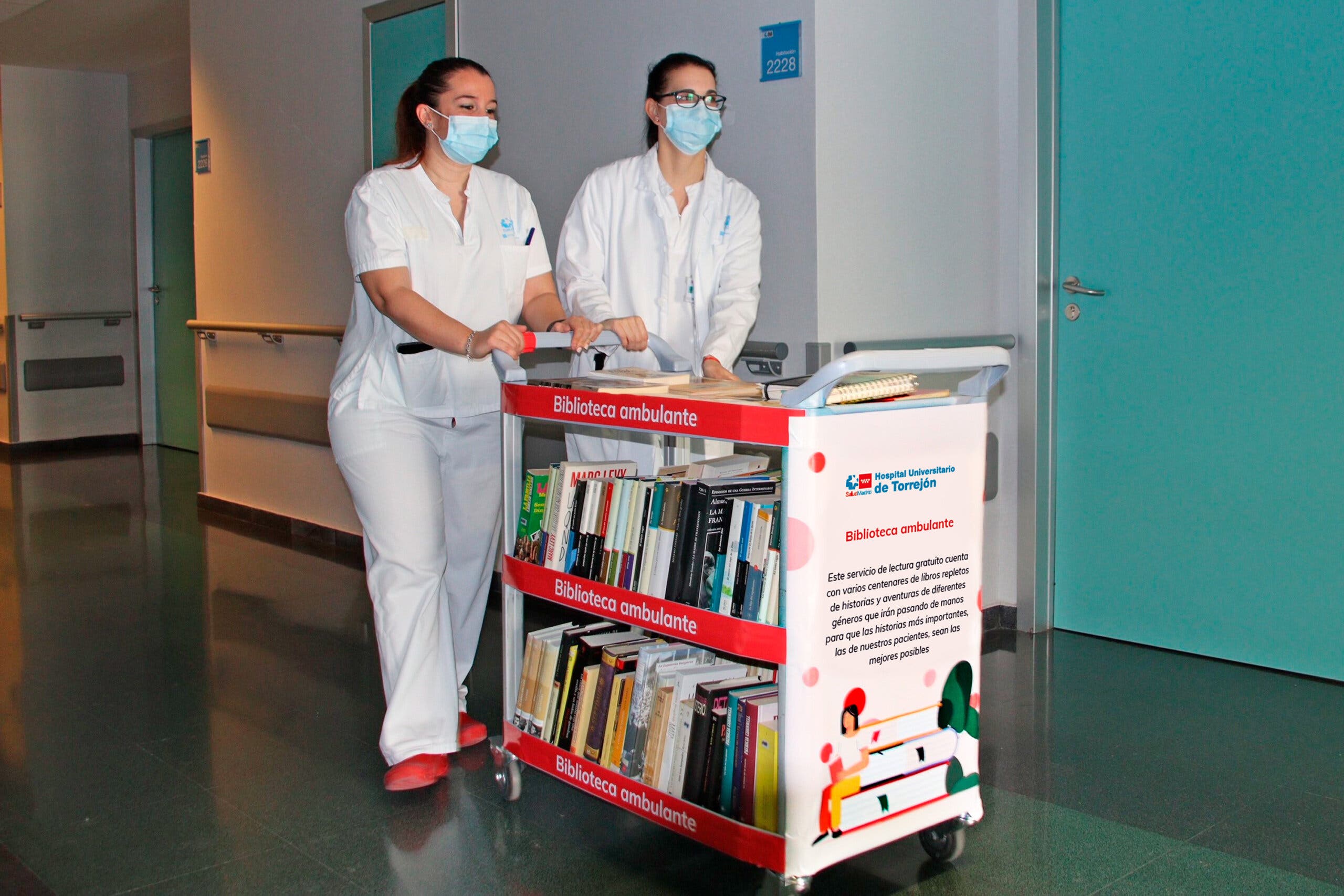 Este servicio de lectura gratuito cuenta con varios centenares de libros repletos de historias y aventuras de diferentes géneros que irán pasando de manos para que las historias más importantes, las de los pacientes, sean las mejores posibles. El equipo de enfermería del Hospital Universitario de Torrejón recorrerá las habitaciones, estancias y pasillos de los servicios mencionados para acercar la lectura a pacientes y familiares.
