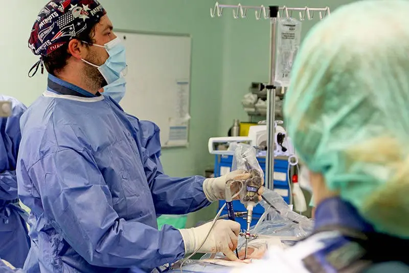 A través de pequeñas incisiones, el servicio de Cirugía Ortopédica y Traumatología introduce un endoscopio que cuenta con una cámara de alta definición para acceder a la columna vertebral y tratar la patología a través de la imagen en un monitor.