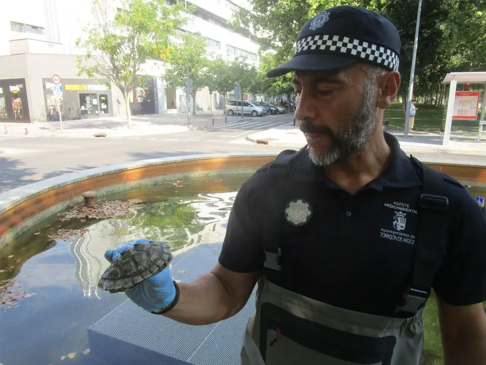 Los Agentes Medioambientales del Ayuntamiento de Torrejón de Ardoz recogieron el pasado 26 de julio 11 ejemplares de galápago de Florida que habían sido soltados de forma deliberada en una de las fuentes situadas en el Paseo de la Democracia, en el barrio de Soto del Henares.