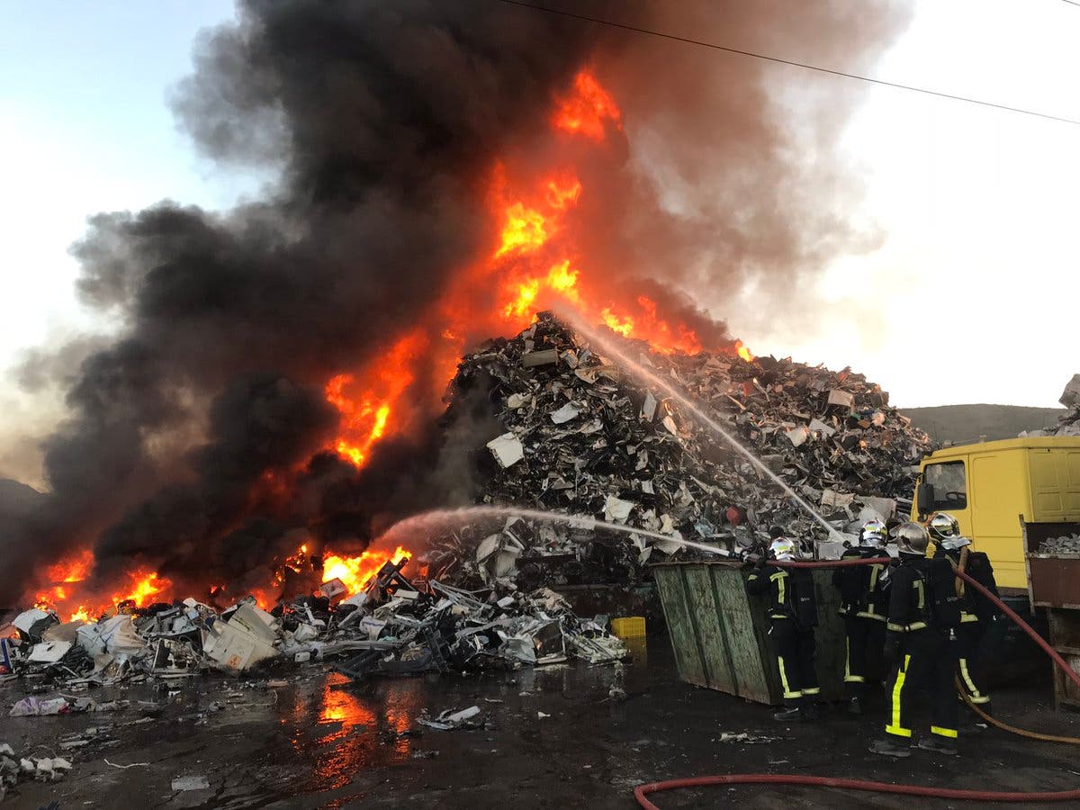Un total de nueve dotaciones de Bomberos de la Comunidad de Madrid trabajan en el lugar para sofocar las llamas que han afectado a un montón de chatarra de unos seis metros de altura, según han informado a MiraCorredor fuentes del 112.