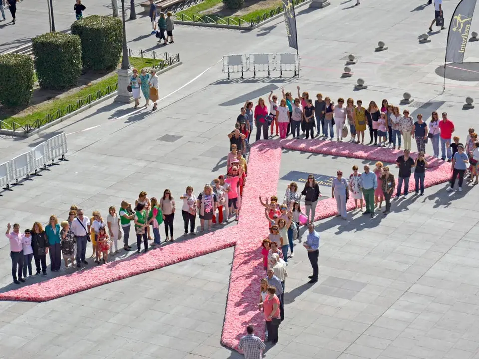 Interflora y la Asociación de Floristas de Madrid en colaboración con el Ayuntamiento de Torrejón han elaborado un gran lazo rosa de flores naturales como muestra de apoyo a la Asociación Española Contra el Cáncer.