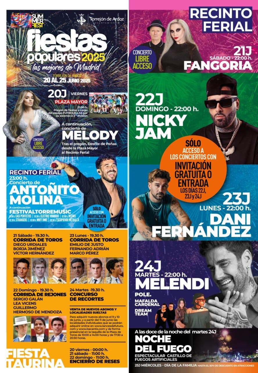 Vuelven las Fiestas de Torrejón con Melendi, Nicky Jam, Dani Fernández, Fangoria, Antoñito Molina y Melody