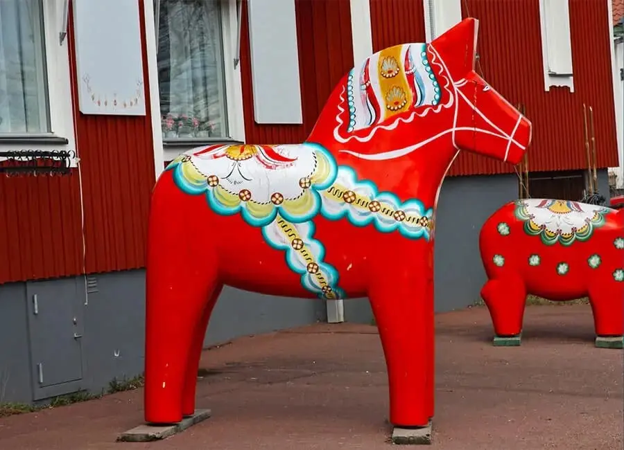 El caballo de Dalecarlia: procedente de la provincia sueca de Dalecarlia, se ha convertido en todo un símbolo de Suecia. El caballo era un animal muy valioso, un amigo fiel y trabajador que podía tirar de grandes cargas de maderas en los bosques durante los meses de invierno y, en verano, ayudaba a las tareas del campo.