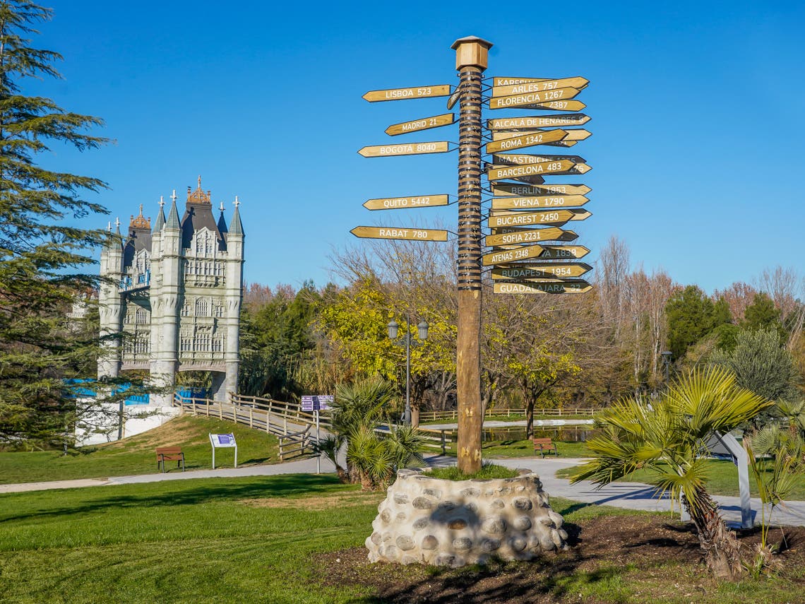 El monumento original se encuentra en Karesuando, la localidad más septentrional de Suecia, y señala las distancias a distintos puntos emblemáticos del mundo. En su réplica en Torrejón, se han calculado las distancias hasta 35 ciudades, entre ellas Karesuando, Älmhult (ciudad sueca donde nació IKEA), San Petersburgo, Lisboa, Bruselas, Copenhague, Oslo, Estocolmo, Berlín, Ámsterdam, París, Florencia, Londres, Roma, Atenas, Bogotá, Quito, Alcalá de Henares, entre otras.