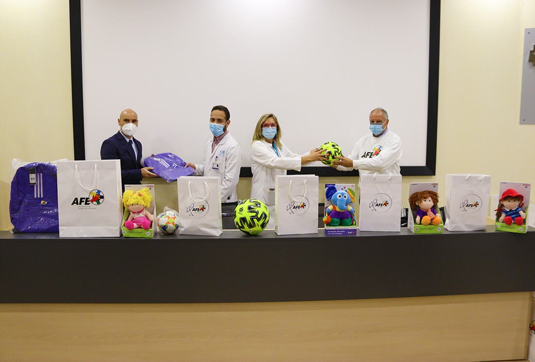 La AFE dona packs individuales de juguetes a los niños hospitalizados en el centro.