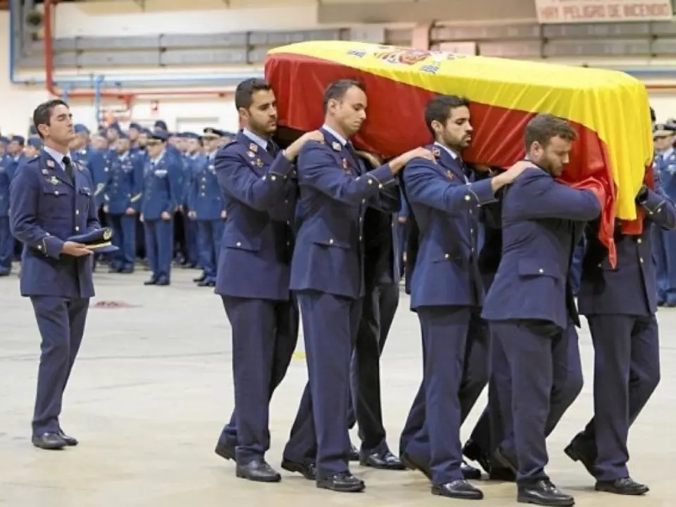 El acto militar ha sido oficiado por el vicario general del Aire, Pablo Panadero, y tras la misa, la ministra ha colocado sobre el féretro del oficial la Cruz al Mérito Aeronáutico con Distintivo Amarillo, concedida a título póstumo.