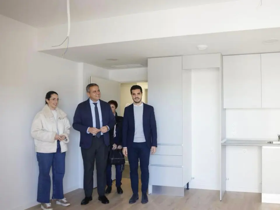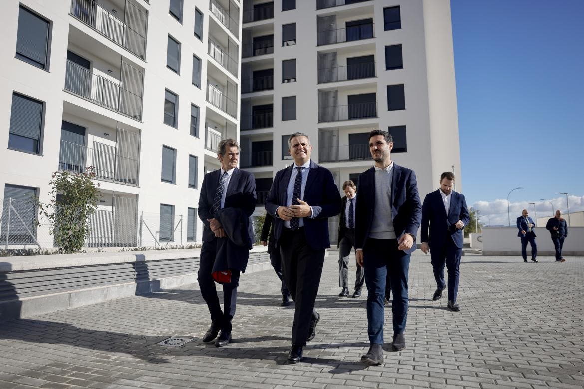 El consejero de Vivienda, Transportes e Infraestructuras, Jorge Rodrigo, ha visitado, acompañado del alcalde, Alejandro Navarro, la promoción junto a sus nuevos inquilinos que pagarán entre los 550 y los 927 euros mensuales, incluidos los gastos de comunidad e IBI, un coste hasta un 40% inferior al de mercado.