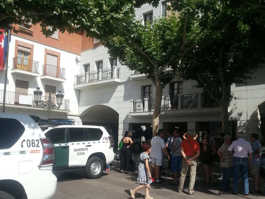 En Torrejón, los registros se han realizado en medio de un gran revuelo mediático y ciudadano a las puertas del Consistorio, en la Plaza Mayor, como se puede ver en la foto que publicamos aquí en MiraCorredor.tv: