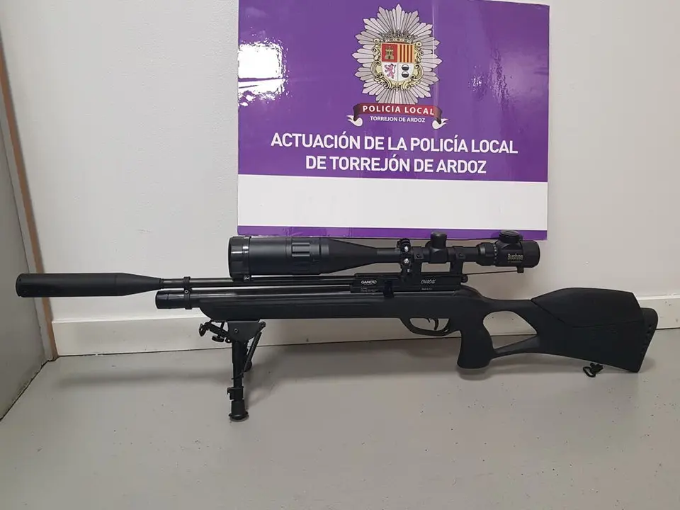 La Policía Local de Torrejón de Ardoz ha incautado a un individuo una escopeta de aire comprimido con mira telescópica.