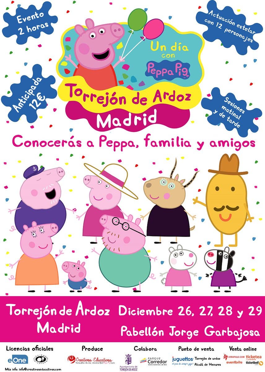 Un día con Peppa Pig, la representación de un parque temático de la prestigiosa marca Peppa Pig, desembarca estas Navidades, del 26 al 29 de diciembre, en el Pabellón Jorge Garbajosa de Torrejón de Ardoz, junto al centro comercial Parque Corredor.