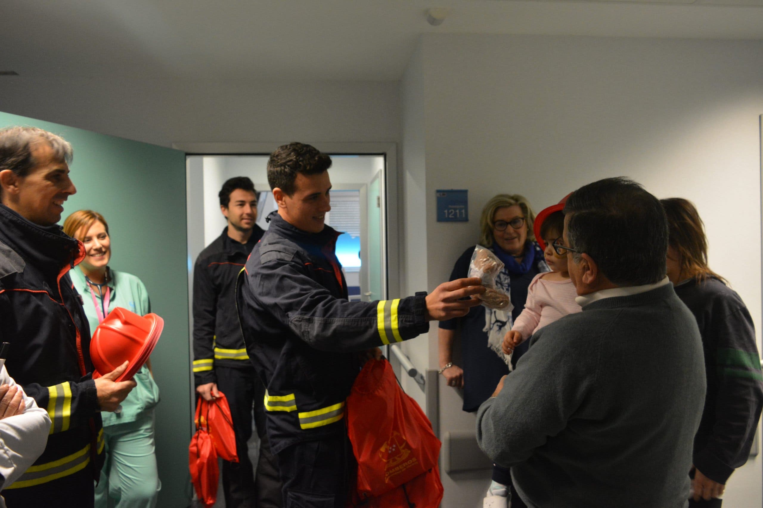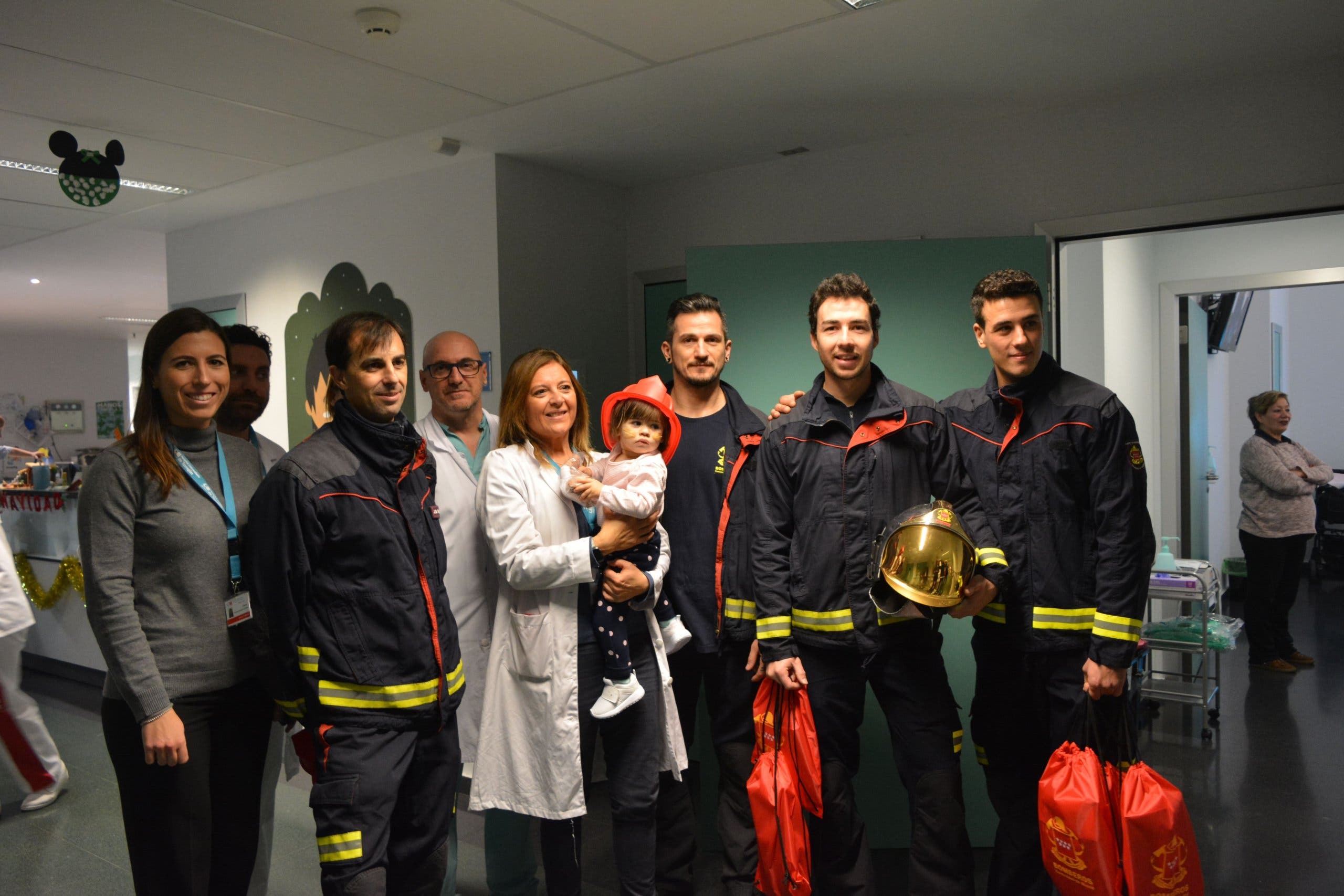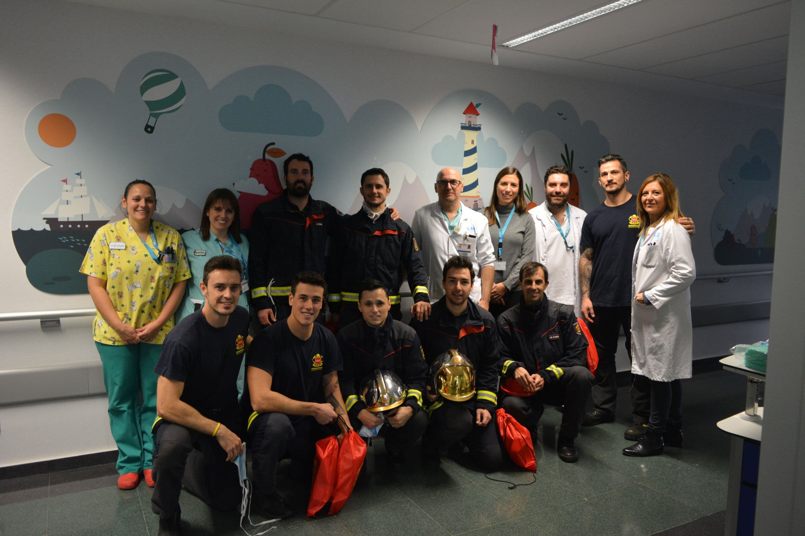 Miembros del Cuerpo de Bomberos de Torrejón de Ardoz visitaron a los niños y les desearon una pronta recuperación.