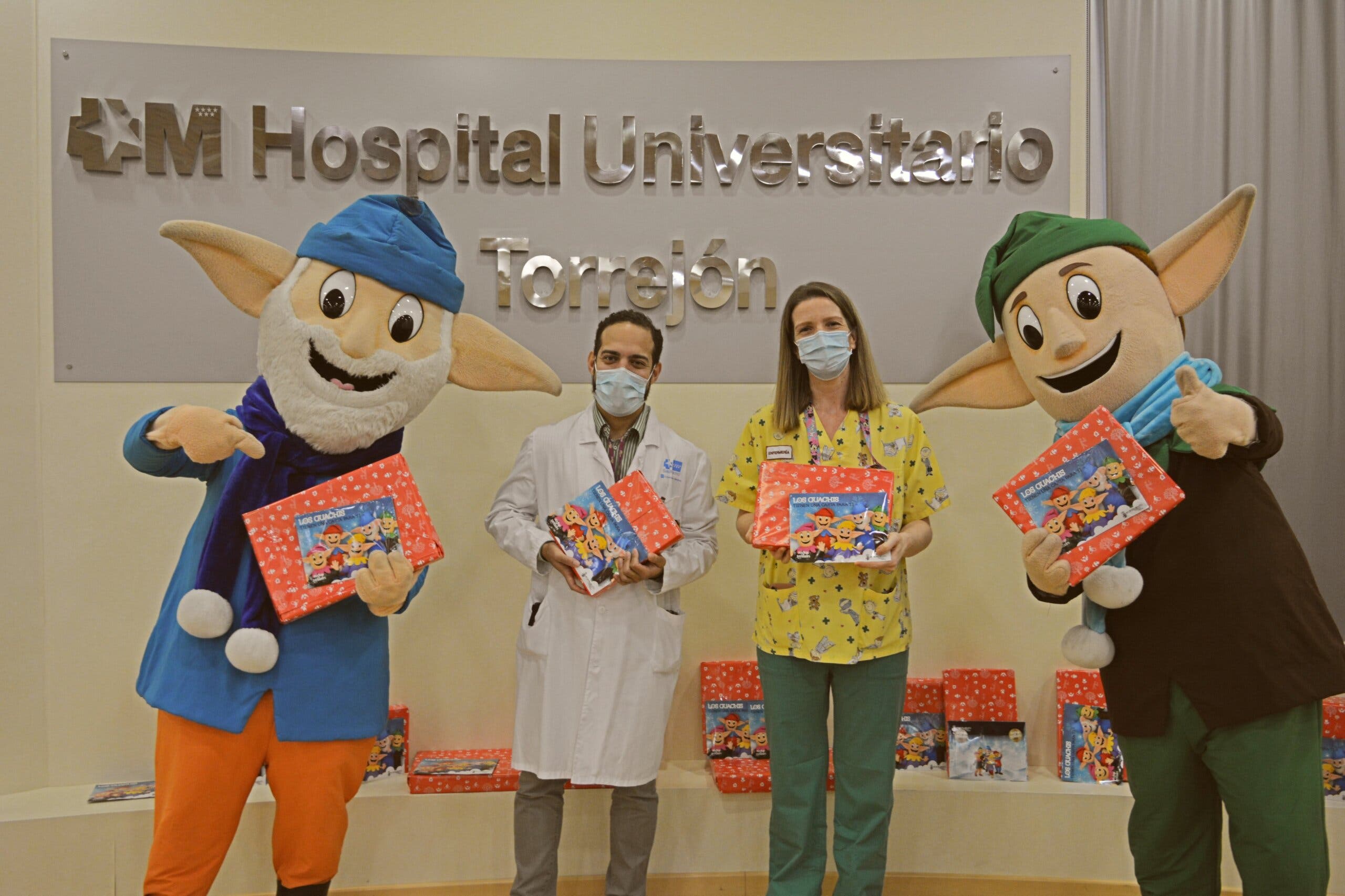 Los niños que se encuentran ingresados en planta de Pediatría en el Hospital Universitario de Torrejón recibieron los juguetes donados por la especial visita de unos personajes muy queridos por ellos, Los Guachis, grandes protagonistas de las Mágicas Navidades de la ciudad.