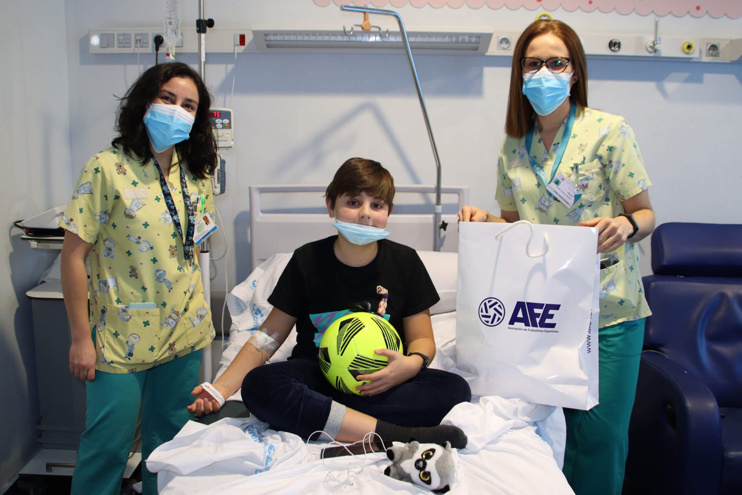 La Asociación de Futbolistas Españoles (AFE) acudió esta semana al centro para entregar packs de regalos individuales a los más pequeños que pasan estos días en la Unidad de Hospitalización de Pediatría.