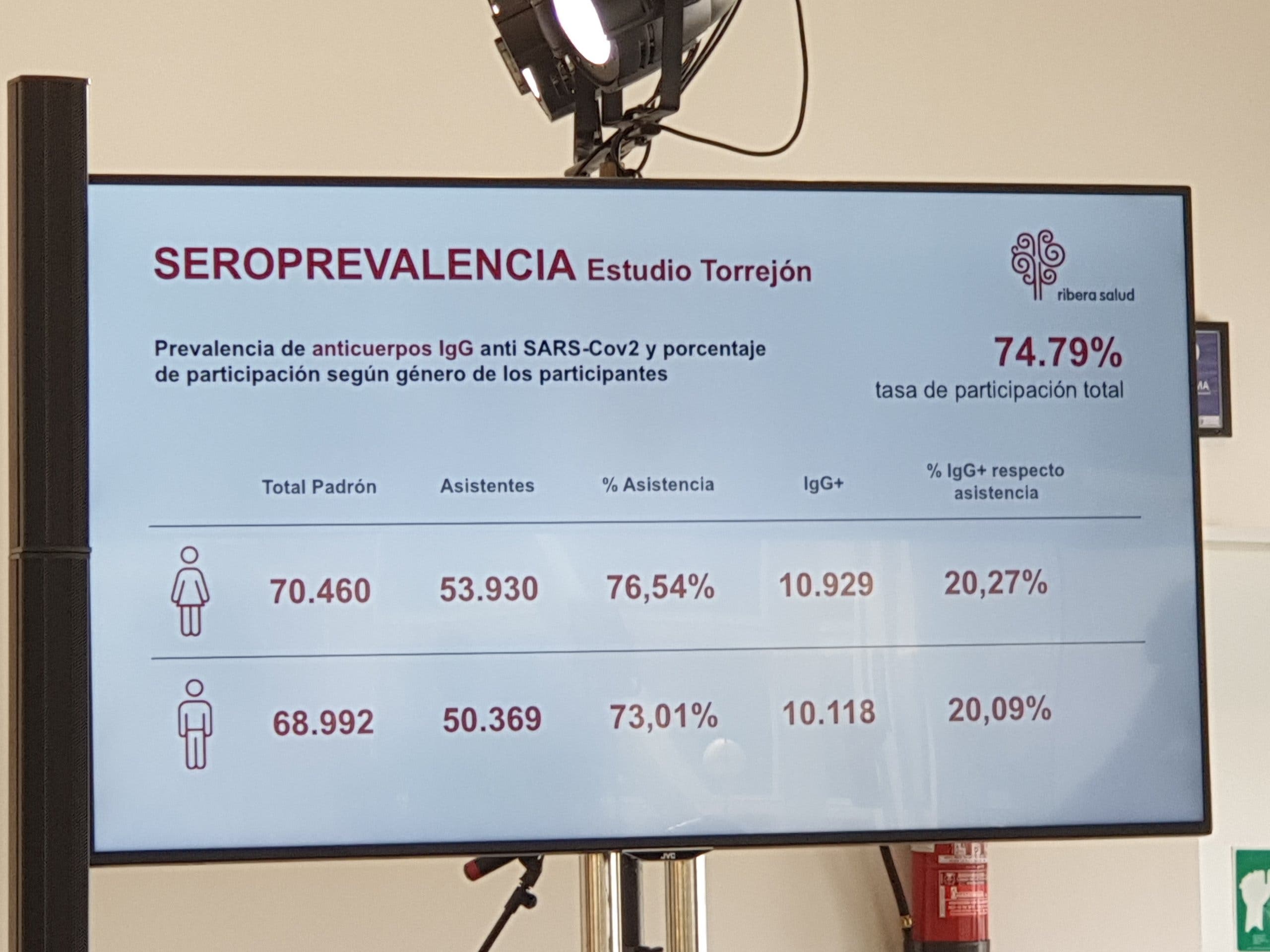 Los test de coronavirus realizados gratuitamente a toda la población han permitido detectar a 100 positivos activos, que han sido aislados durante 14 días para evitar nuevos contagios, según se desprende del estudio de seroprevalencia, impulsado por el Ayuntamiento de Torrejón de Ardoz, en colaboración con Ribera Salud, cuyos resultados han sido presentados hoy.