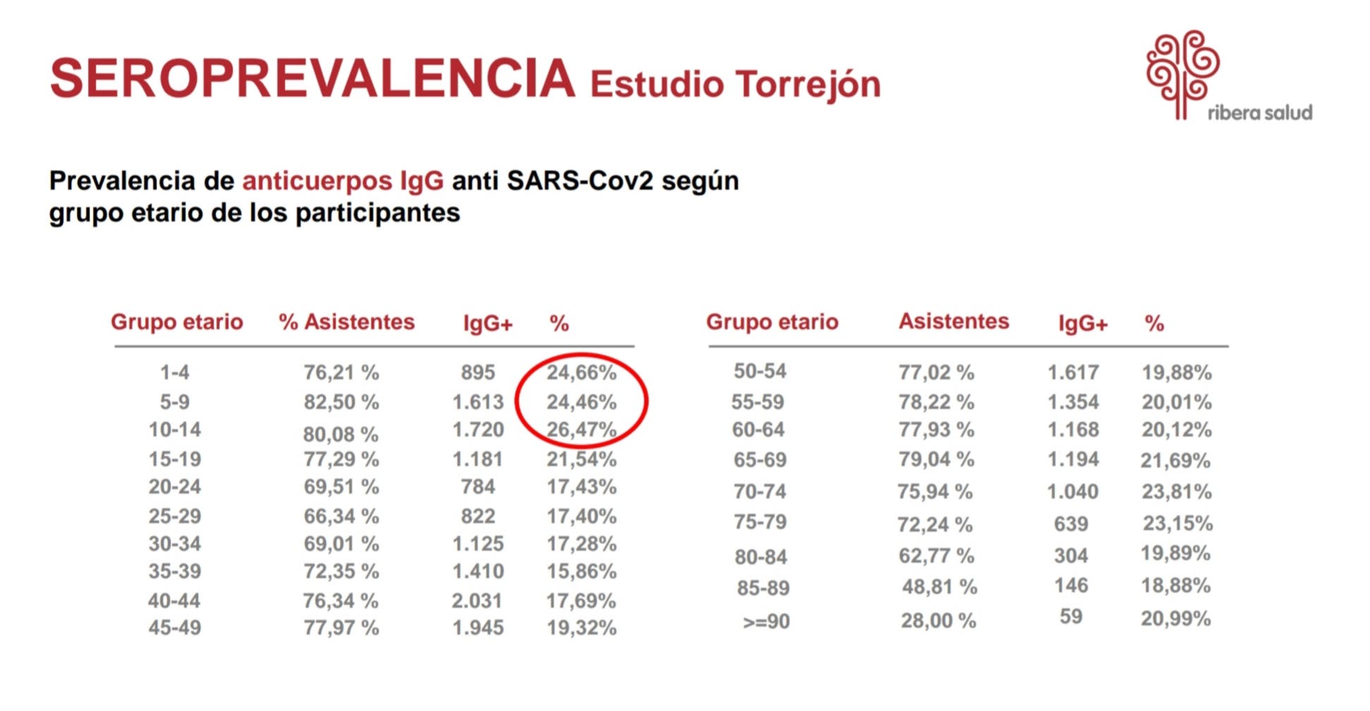 Los niños y adolescentes entre 10 y 14 años han revelado una seroprevalencia media del 26,47% en IgG, seis puntos superiores a la media, seguidos de los menores de entre 1-4 años, el grupo de 5 a 9 años y los mayores entre 70 y 74.