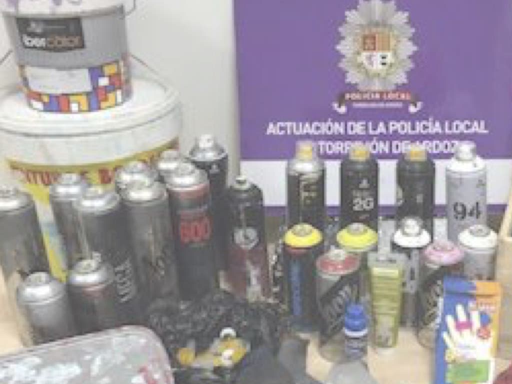 La Policía Local de Torrejón de Ardoz ha interceptado en las últimas semanas a 11 individuos realizando pintadas vandálicas y se ha incautado de gran cantidad de material utilizado para realizar este tipo de pintadas.