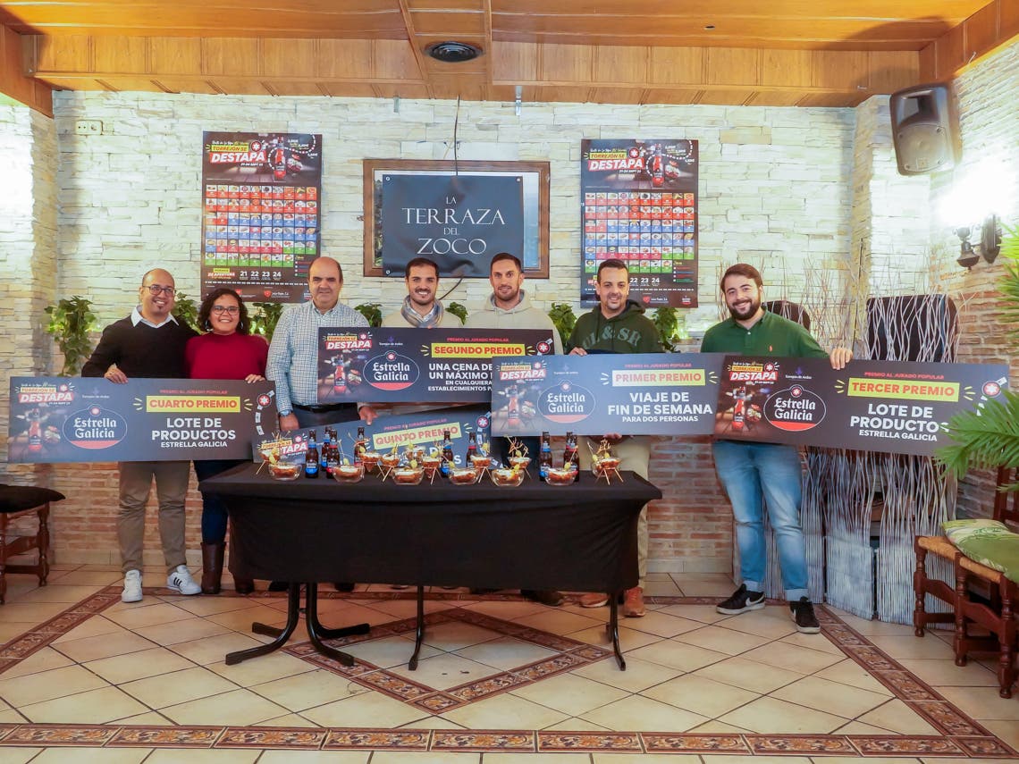 Además, también se han sorteado cinco regalos entre todos los clientes que rellenaron sus datos en el rutero que estaba en todos los locales participantes. El primer premio de un viaje de fin de semana para dos personas se lo ha llevado Juan Carlos Calvo Saldaña. El segundo premio de una cena de hasta un máximo de 100 euros en cualquiera de los locales participantes ha sido para Javier Campiñez González. Por último, se han repartido tres premios más de un lote de productos Estrella Galicia, que se los han llevado Jorge García Gutiérrez, Judith Rodríguez Salazar y Nuria del Monte Gil.