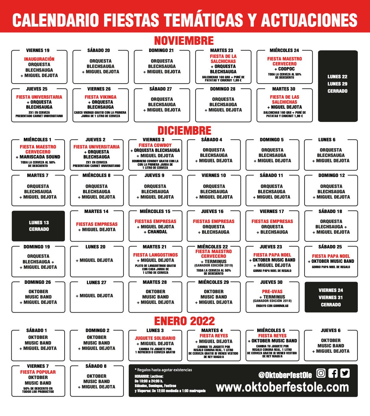 La Bavarian Christmas ofrece, además, fiestas temáticas prácticamente todas las noches, con interesantes promociones y regalos: este jueves, Fiesta Universitaria; y el viernes, Fiesta Cowboy. Más información en oktoberfestole.com.