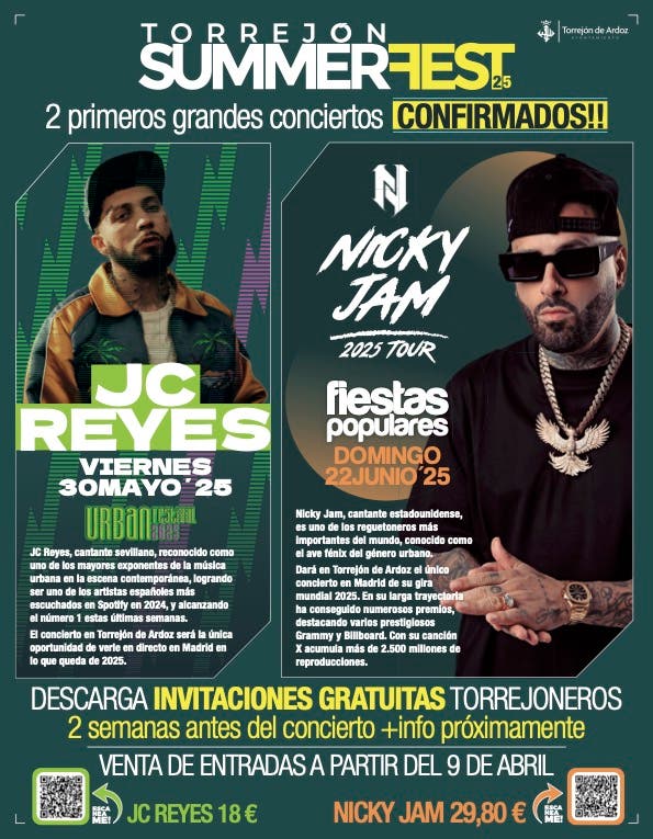 - Las invitaciones gratuitas para torrejoneros se podrán descargar online dos semanas antes del concierto, con más información próximamente.