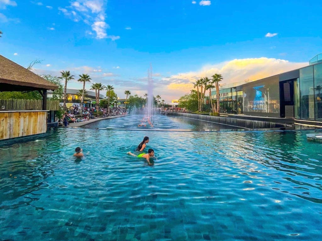 Oasiz Madrid también tiene dos lagos centrales con un total de 10.000 metros cuadrados, escenario para espectáculos en directo, una amplia oferta gastronómica –a la que hace unos días se sumó el restaurante Wanderlust, especializado en carnes de la sierra de Guadarrama y cervezas artesanas–, actividades deportivas, área infantil y gimnasio.