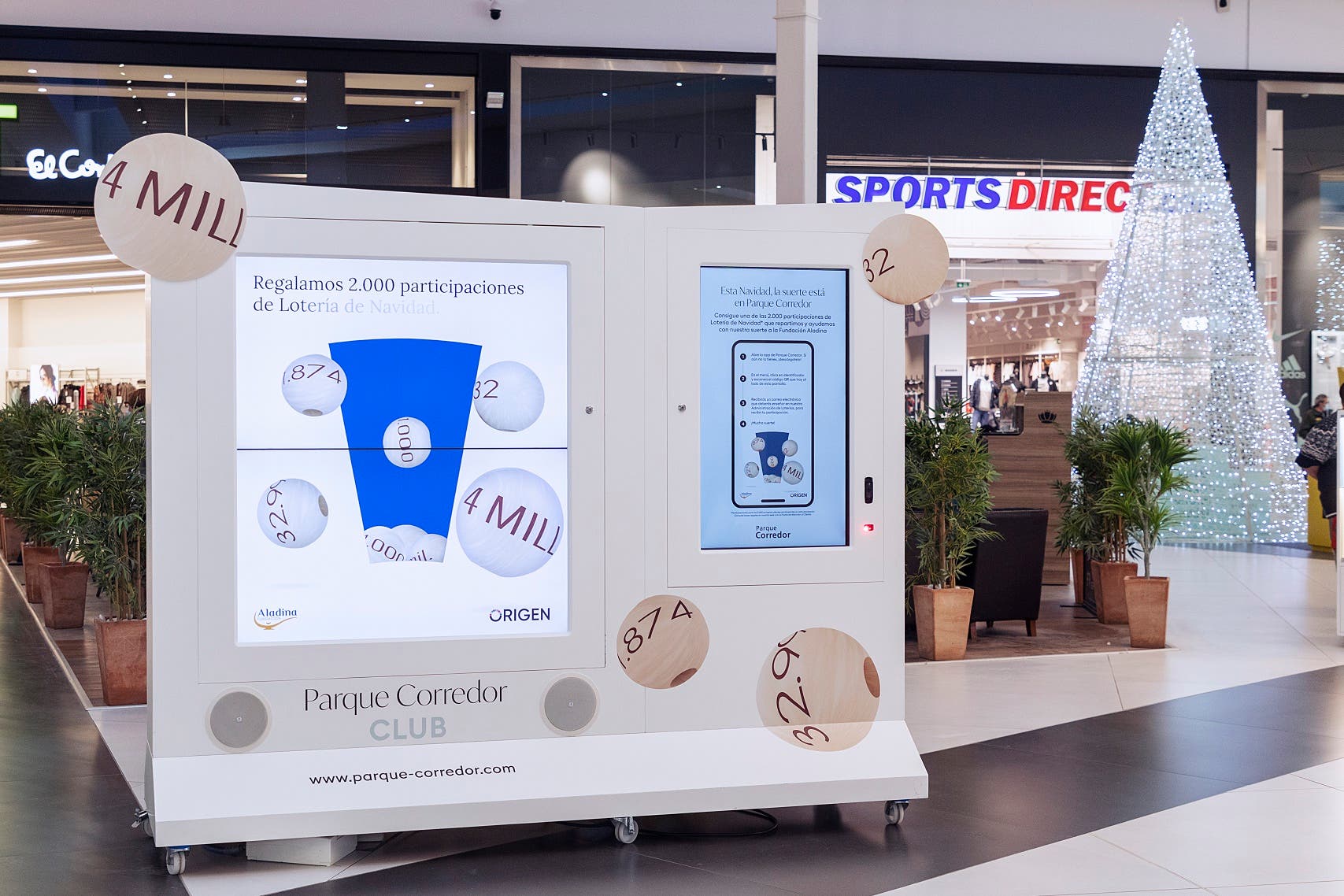 Para conseguir la participación hay que visitar el tótem de la acción que está situado en el centro, escanear el código QR de la App Parque Corredor y esperar el mail de confirmación para recoger la participación en la Administración de Lotería Campanilla del centro comercial, situada al lado de Alcampo.