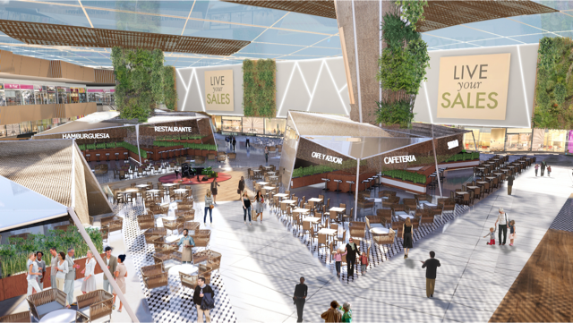 El interior experimentará una completa transformación: los pasillos comunes tendrán mayores dimensiones en altura y anchura, lo que potenciará las sensaciones para crear experiencias de compra diferenciadas; la iluminación natural será más notoria y agradable y se crearán nuevas zonas de descanso más amplias, confortables e interactivas.