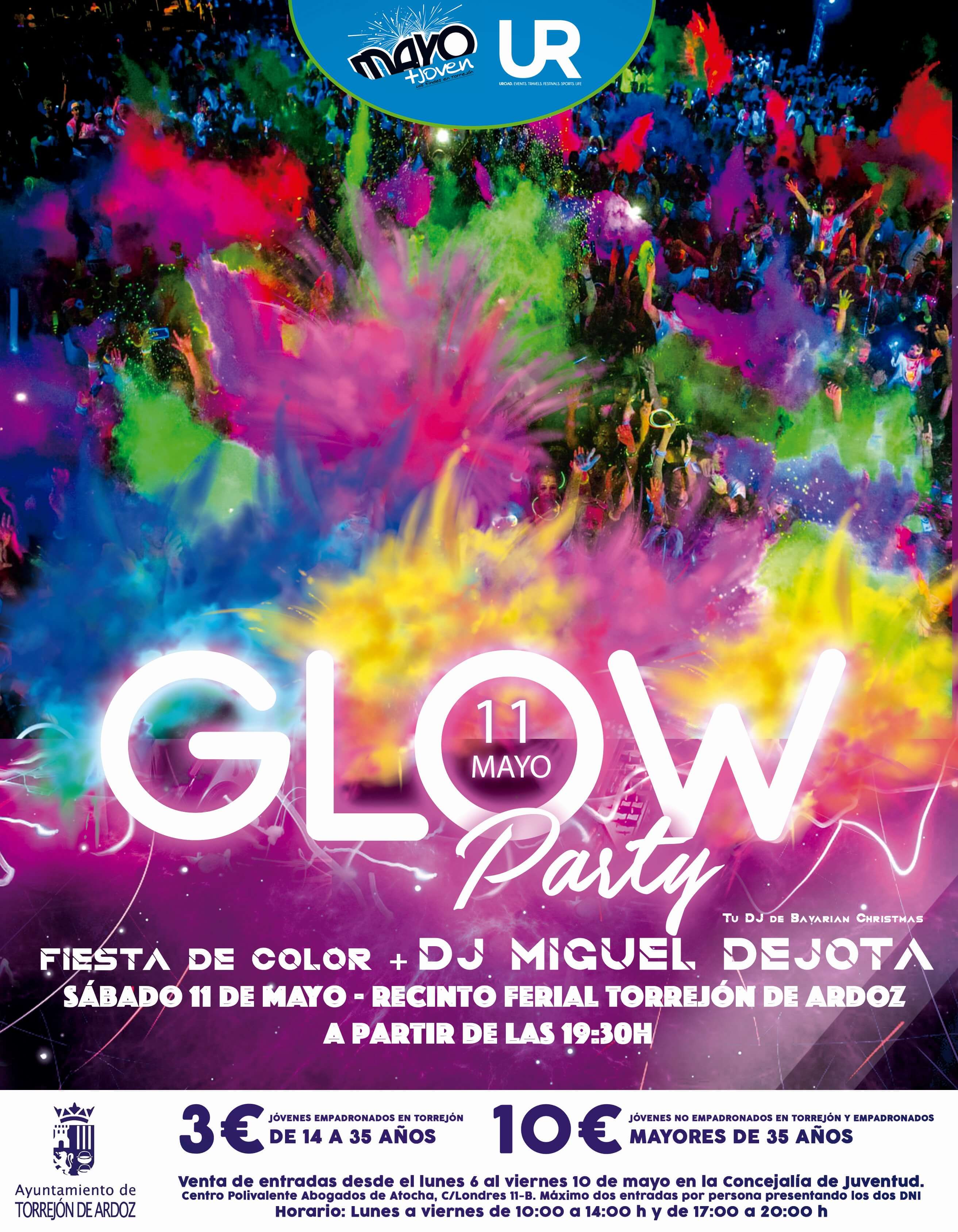 El sábado 11 de mayo en el Recinto Ferial de Torrejón de Ardoz se celebrará una Glow Party, una fiesta del color con DJ Miguel Dejota (el DJ-animador de la feria de la cerveza en las Mágicas Navidades) a partir de las 19.30 horas, con polvos holi, mucho brillo e iluminación.
